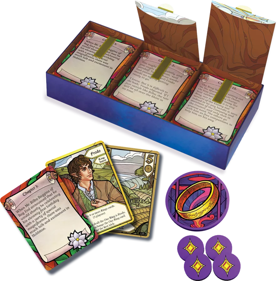 The Fellowship of the Ring: Trick-Taking Game is a co-operative card game that plays out over eighteen chapters that lead players through the events of the novel The Fellowship of the Ring. The chapters can be played in any order, but ideally you play them in sequence.