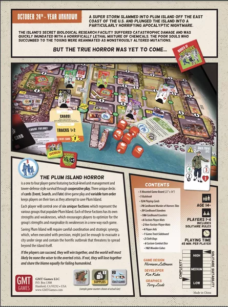 The Plum Island Horror is a 1 to 4 player game featuring cooperative play that combines tactical-level unit management with a tower-defense style survival mechanic. Each player will control one of six unique factions which represent the various groups that populate Plum Island. Each of these Factions has its own strengths and weaknesses, and the system encourages you to optimize for the group’s strengths and marginalize its weaknesses.