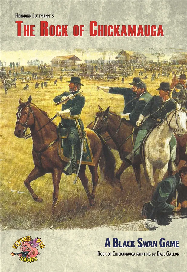 The Rock of Chickamauga is the next game in the Black Swan series and follows closely on the heels of A Most Fearful Sacrifice. Using the same proven game system, The Rock of Chickamauga covers the entire Battle of Chickamauga, fought from September 18th through the 20th, 1863 in northern Georgia. The Union Army of the Cumberland, under William Rosecrans, is driving south from Chattanooga, hoping to envelop and trap Braxton Bragg’s Confederate Army of Tennessee in its vise. But Bragg anticipates the maneuver, pulls back and then counterattacks the overextended Union forces. They meet along Chickamauga Creek, the “River of Death”, in an epic struggle.