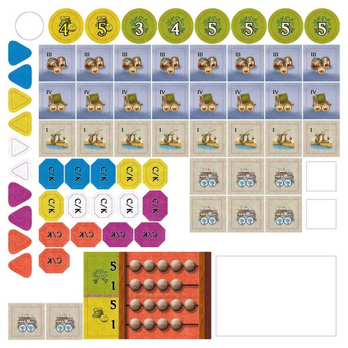 The Sands of Time is a civilization-building game set loosely in classical antiquity, on a board inspired by a Roman-era map. Each player rules over a civilization in the ancient world, attempting exploits that will be remembered long after the civilization has withered. Each turn, players will select two action cards, which represent edicts delivered by the player to his populace, announcing what aspects of the empire he/she wishes to address: building structures, implementing advances, migrating population, initiating combat, annexing new territories, instituting reforms to manage the empire’s unrest, building trade routes, demanding tribute, and -- crucially –- recording Chronicles about his/her reign.