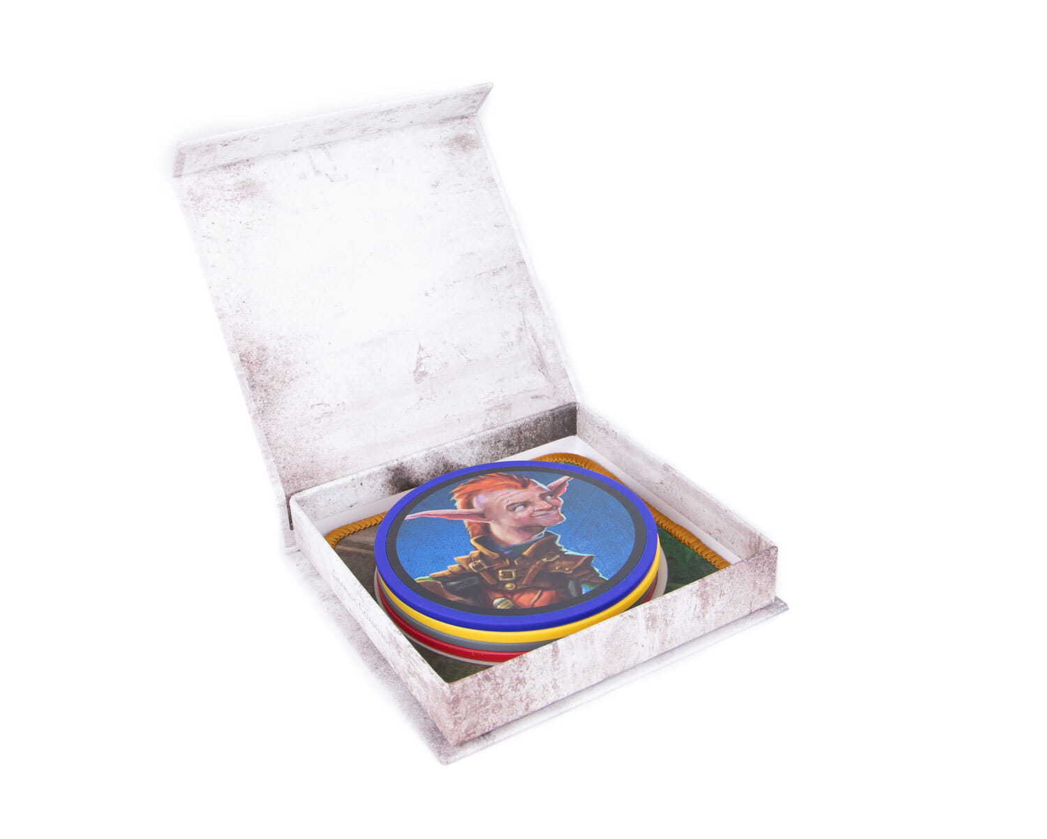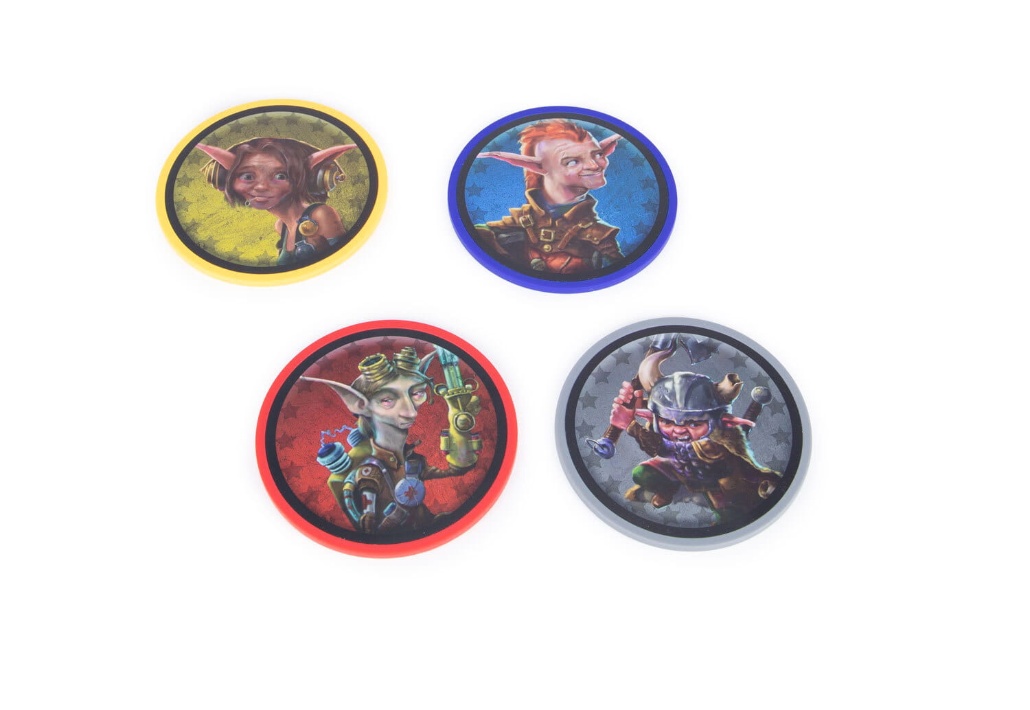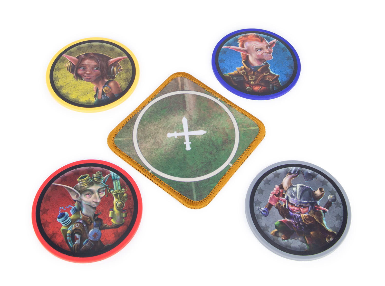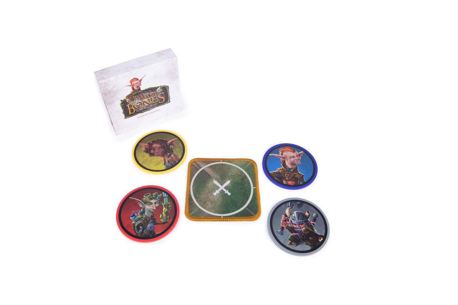 Using the exact same plastic and high quality stickers as our actual game components (albeit with a matte finish on these stickers), these coasters are a lovely and functional novelty on game night. They even feature a tiny battle mat position on neoprene for storage! This set features all four of the OG Gearlocs from the Too Many Bones base game, complete with an innate +1 side! Grab both the Gearloc and Baddie sets to complete your collection!