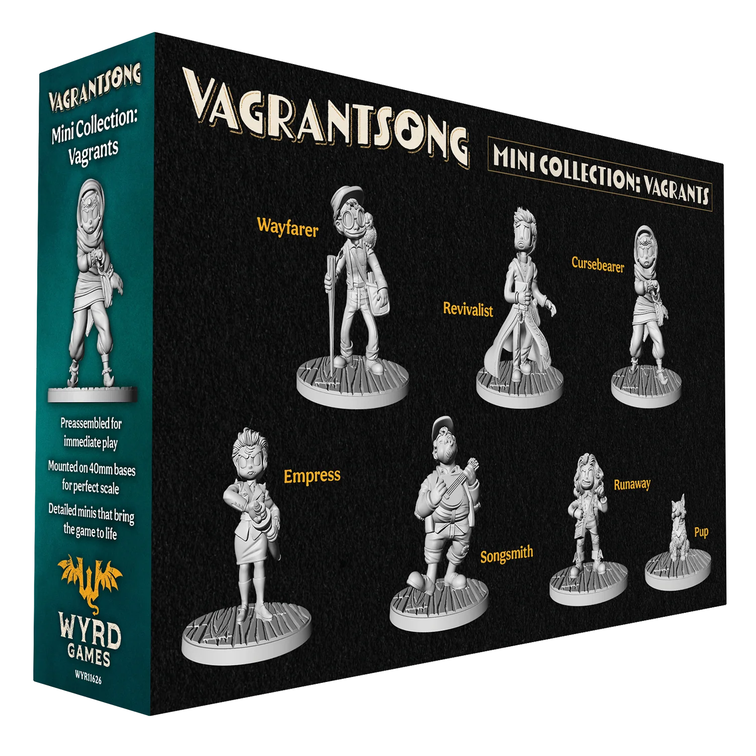 Bring your Vagrants to the table like never before with the Vagrantsong Miniatures Pack. This set features six detailed, pre-assembled miniatures to replace the standees found in the base game, adding visual presence and personality to your sessions.