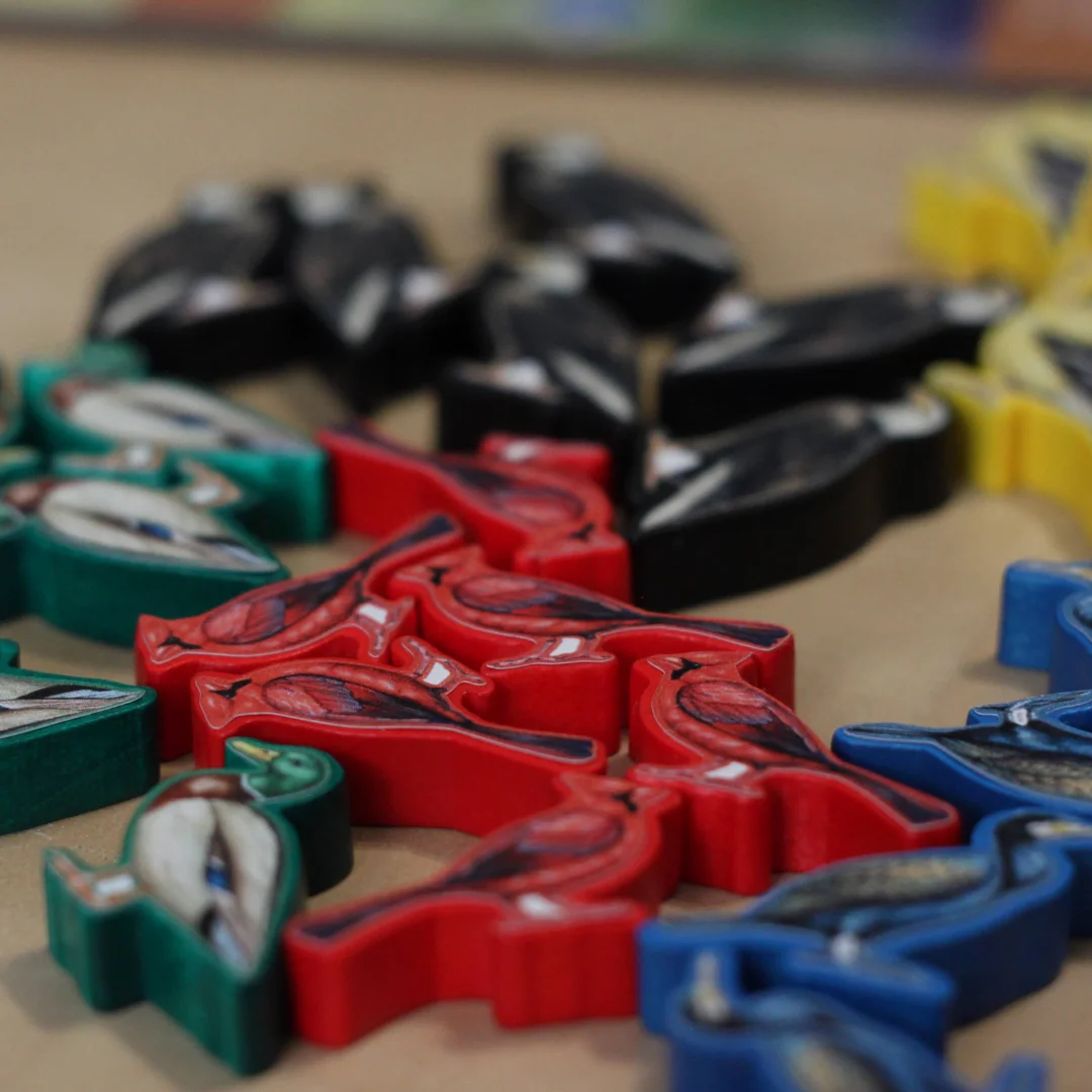 Wingspan: Wooden Bird-shaped Player Tokens and Stickers