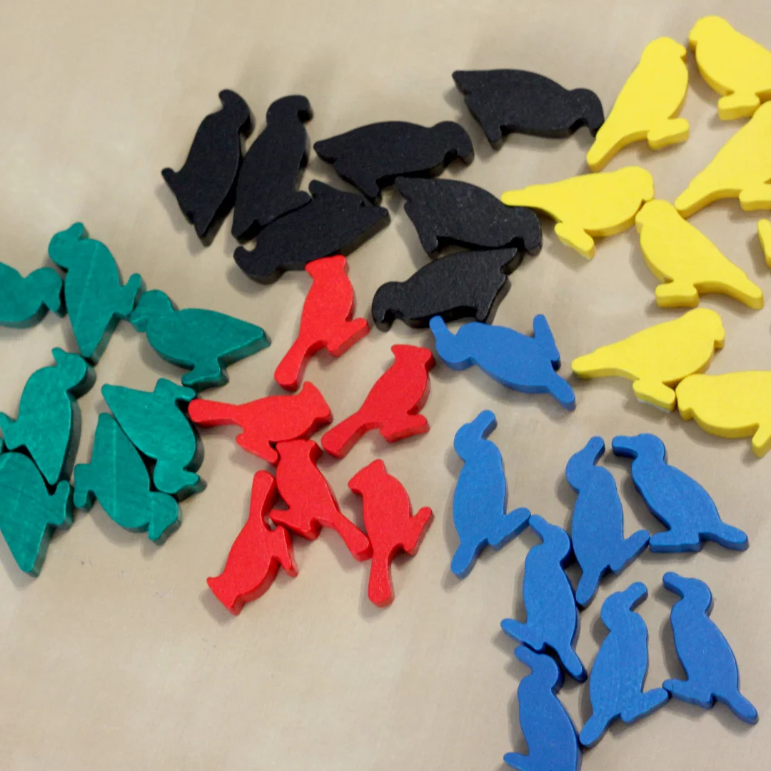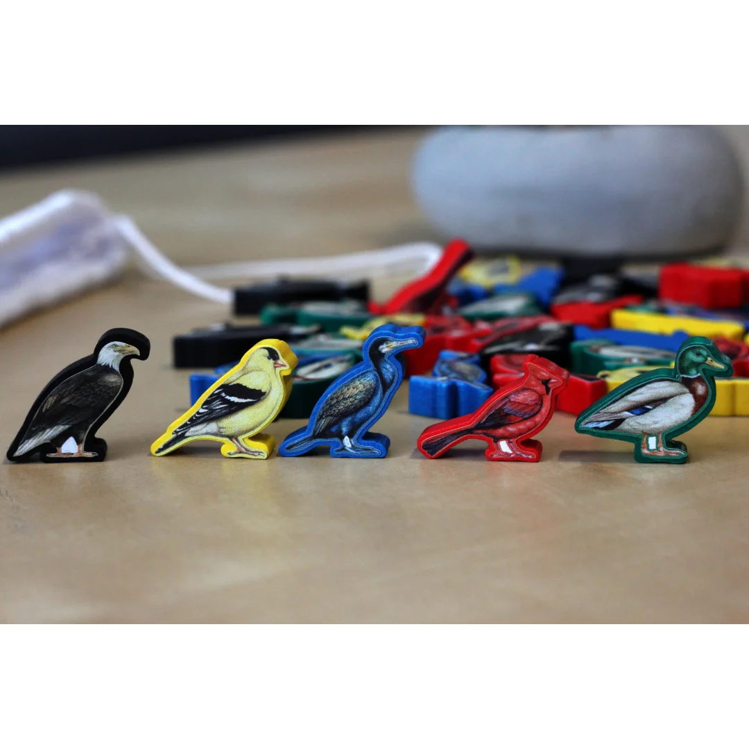 - Set Includes: 40 pieces Unique wooden bird-shaped player tokens and corresponding stickers