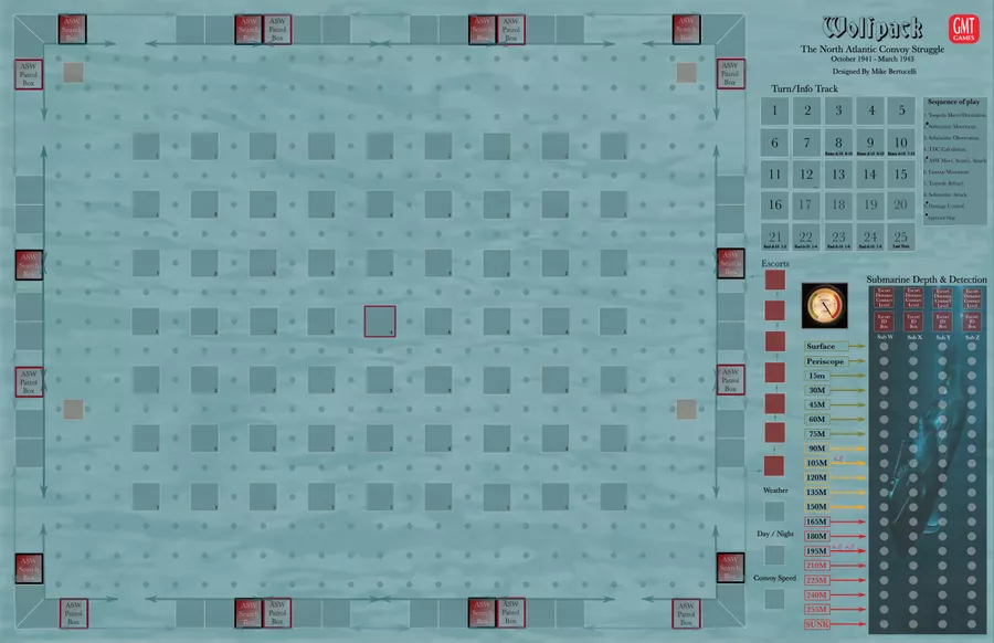 Wolfpack is a tactical, historical game depicting the struggles between the German submarine Wolfpacks and the allied merchant convoys of WWII. Wolfpack is set in the vast North Atlantic from late 1941 to early 1943.