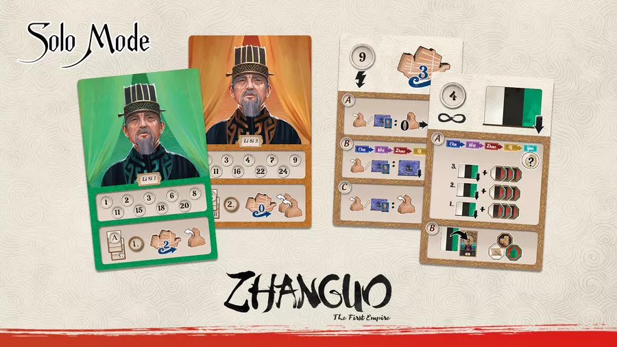 W ZhanGuo zostało Ci przydzielone trudne zadanie, jakim jest przyczynienie się do procesu zjednoczenia Imperium, aby w końcu uczynić Walczące Królestwa jego nierozerwalną częścią. W każdej z 5 rund gry, staraj się jak najlepiej wykorzystać otrzymane karty. Możesz zagrywać każdą kartę zarówno na swoją planszę gracza, aby zwiększyć swoje osobiste wpływy lub na planszę główną, aby werbować siłę roboczą, budować pałace, jakich życzy sobie Cesarz, przemieszczać urzędników, wprowadzać na urząd zarządców i pomagać w budowie Wielkiego Muru.