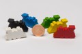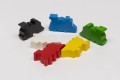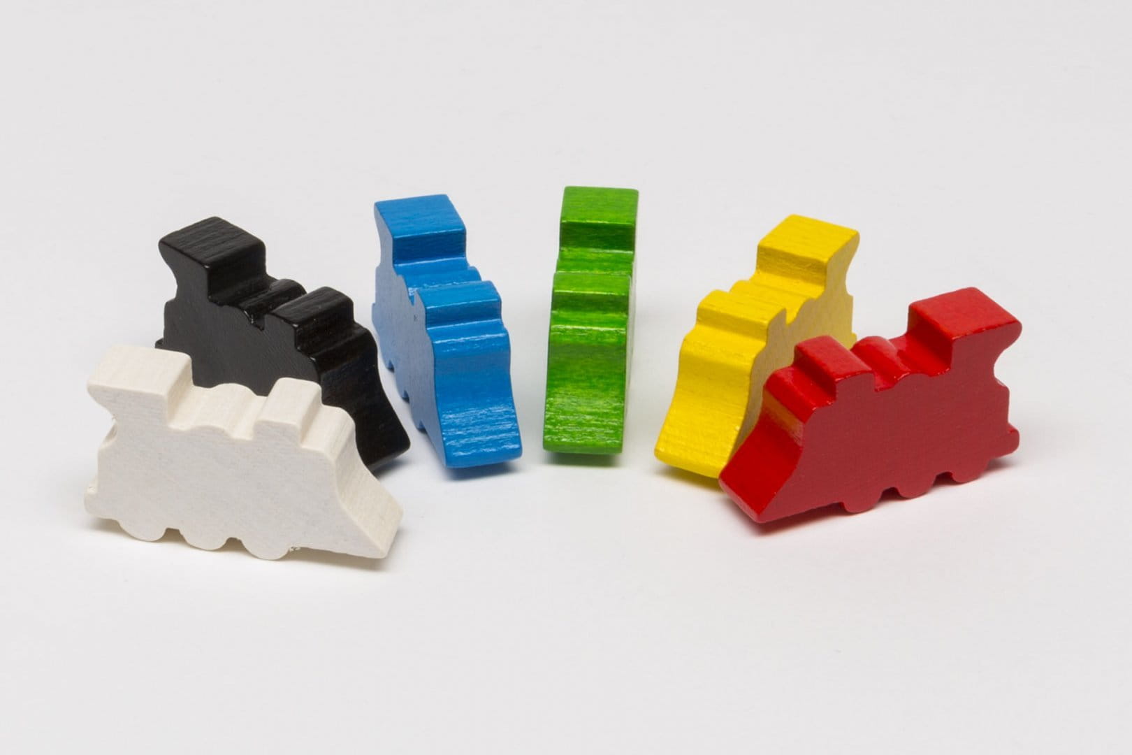 170 drewnianych znaczników lokomotyw o wymiarach 32x17x8 mm w 5 różnych kolorach: 10szt czerwonych oraz po 40szt w każdym z kolorów: żółty, zielony, niebieski oraz biały.