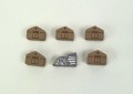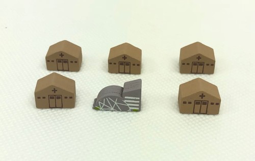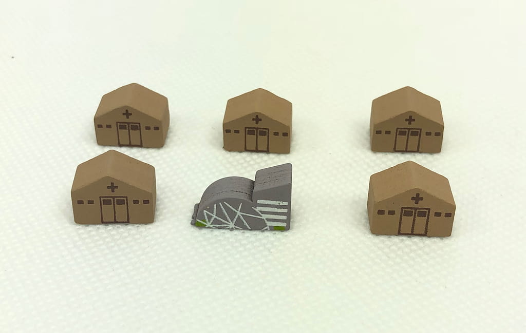 Zestaw 6 drewnianych budynków (Research Center) do gry Pandemic.
