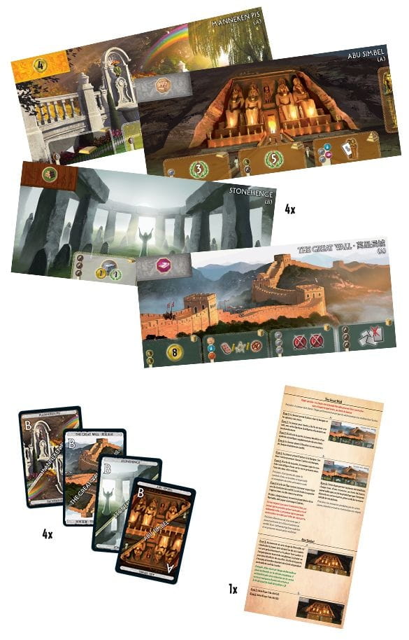 7 Cudów Świata: Wonder Pack, trzeci dodatek do 7 Cudów Świata, zawiera 4 nowe cuda świata, urozmaicając tym sposobem i odświeżając zarówno grę podstawową, jak i dodatki.