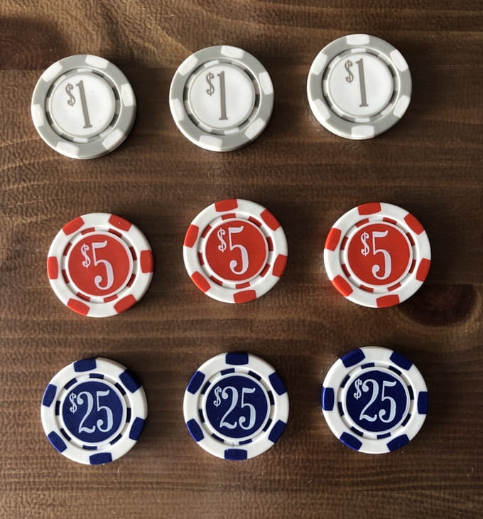 - zmniejszone żetony pokerowe o średnicy 22mm, zastępujące papierowe banknoty