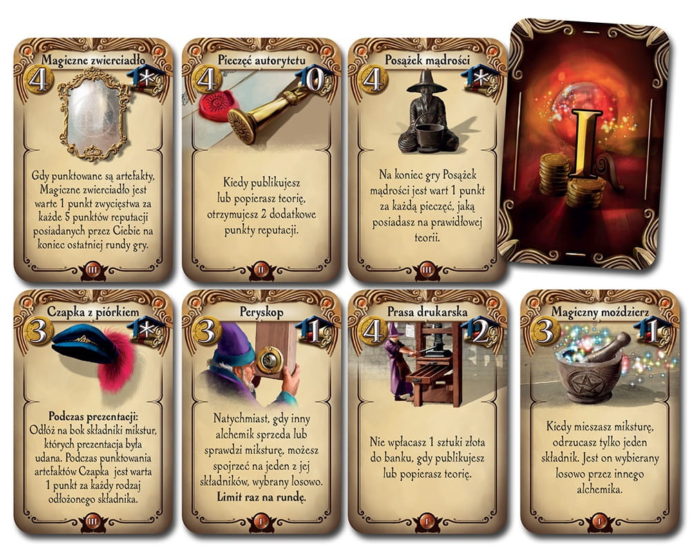 Od dwóch do czterech graczy wciela się w rywalizujących alchemików chcących odkryć sekrety tej tajemnej sztuki. Punkty można zdobywać na różne sposoby, ale najwięcej otrzymuje się za publikację teorii - prawidłowych teorii, warto dodać. I w tym leży problem.