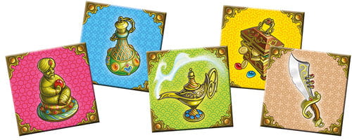 In Ali Baba, you want to collect treasures from the cave of the forty thieves. Each turn you take one of of the open tiles on the game board. After taking a tile, some new tiles can become available. The background color of each tile corresponds with a special effect, and you can use these effects to outsmart your opponents! The more treasures of the same kind you have at the end of the game, the more points you score. Become the most wealthy player to win!