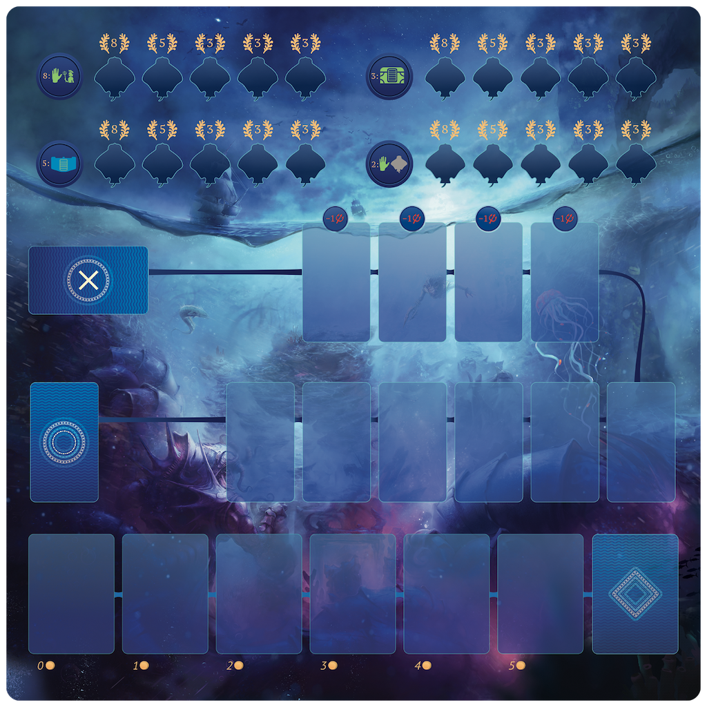 Na planszy głównej znajdują się Cele, które są najlepszą metodą do pozyskania wielu Punktów Zwycięstwa. Tor ma 5 pól, na których gracze kładą swoje Manty jeśli wypełniają wypisane na nich Efekty, ale Cele punktowane są malejąco. Innymi słowy, kto pierwszy, ten lepszy – ten, kto spełnia dany cel szybciej, dostaje więcej punktów. Cele można spełniać jedynie za pomocą Wyszkolonych Mant. Gdy jeden z graczy wypełnił wszystkie 4 Cele, gra się kończy (inne możliwości zakończenia gry to brak kart w talii Lokacji lub Postaci Oceanu).
