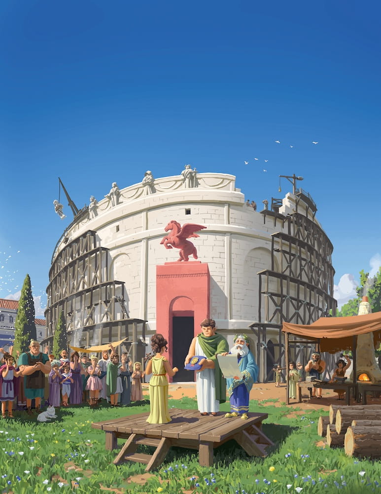 To dynamiczna gra rodzinna, doskonała na początek przygody z planszówkami. Podczas rozgrywki staramy się wznieść własną budowlę, jak najlepiej wykorzystując dostępne efekty i możliwości. W swojej turze wybierasz jedną z trzech kart, na których znajdziesz różne postacie pomocne w zdobywaniu surowców do budowy cudów, dokonywaniu odkryć naukowych oraz toczeniu bitew z sąsiadami.