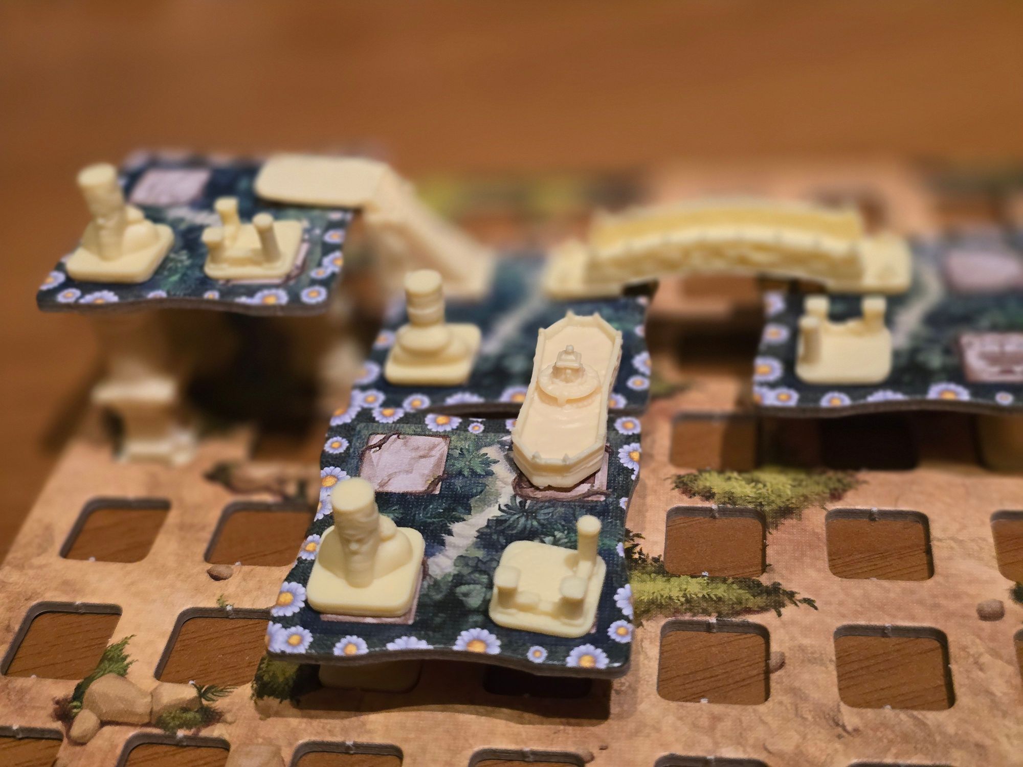 Następnie pora na dobór kafelka Tarasu - leżą one w pudełku w 3 warstwach. Wybierasz kafelek dla siebie i otrzymujesz za niego plastikowe Filary za graniczące z nim kafelki.