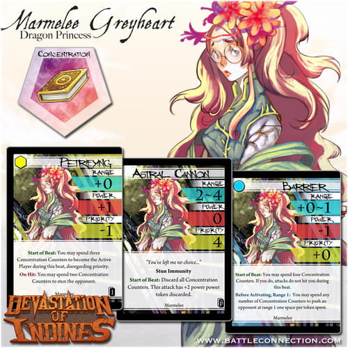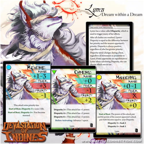BattleCON: Devastation of Indines to gra karciana zaprojektowana z myślą o rozgrywkach drużynowych. Każdy gracz wybiera jedną postać, przy czym każda z tych postaci ma swój unikalny zestaw umiejętności. Do wyboru są takie postacie jak grający na gitarze przyzywacz, para wilkołaków, paladyn, znakomity rzemieślnik artefaktów i wiele więcej! Każda z postaci wymaga osobnych, unikalnych strategii, lecz opiera się na tych samych mechanizmach. Pozwala to na łatwie nauczenie się postaci, jednak opanowanie jej wszystkich sekretów to już nie lada sztuka.