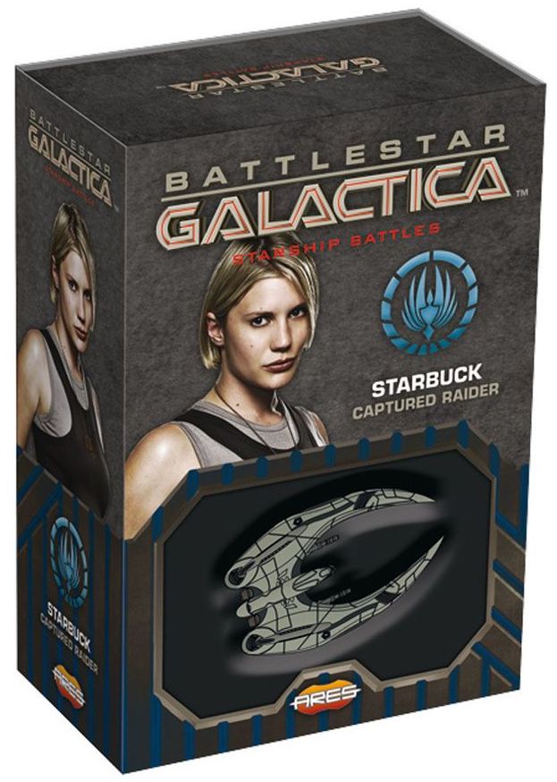 After shooting down this Raider, Kara "Starbuck" Thrace captured and flew it back to the Galactica, adding her call sign under the wings with adhesive tape. This pack includes her pilot and skill cards, and the ship cards to play the model as either Colonial or Cylon ship.