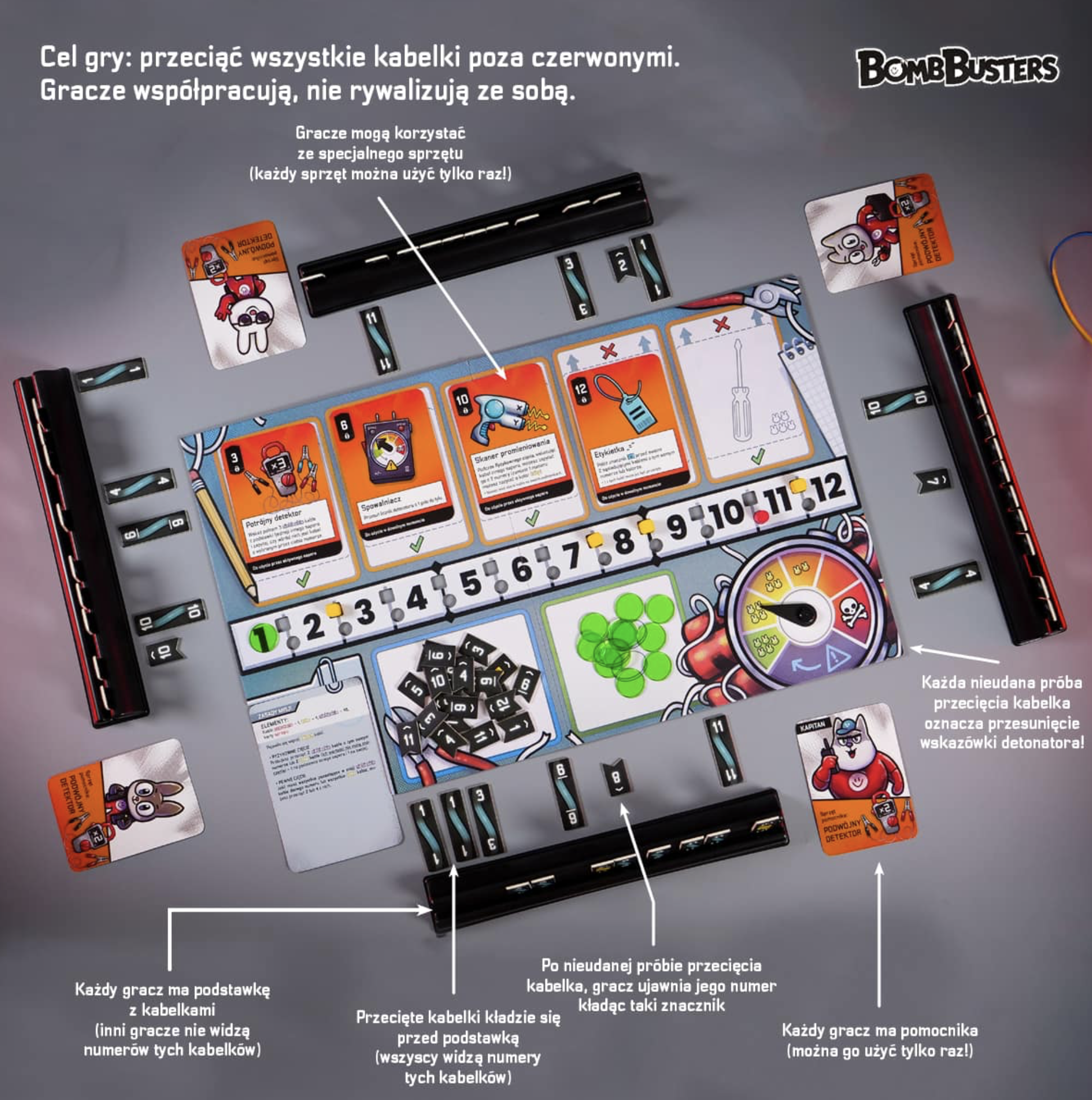Tworzycie elitarną (tak przynajmniej uważacie) grupę saperów. Musicie WSPÓŁPRACOWAĆ, aby sprostać kolejnym wyzwaniom. Rozbrojenie bomby wymaga DEDUKCJI – który kabelek można przeciąć, a którego lepiej nie ruszać? Wygracie, jeśli przetniecie wszystkie kabelki z wyjątkiem czerwonych!