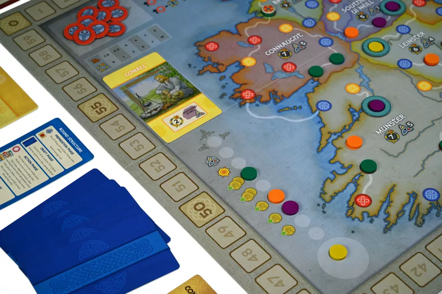 In Brian Boru: High King of Ireland, you strive to unite Ireland under your domain, securing control through might, cunning, and matrimony. Join forces to fend off Viking invaders, build monasteries to extend your influence, and gather support in towns and villages throughout the land. To become High King of all Ireland, you need to navigate a web of shifting alliances, outmaneuver your enemies, and grab history by the reins.