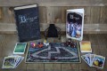 The game comes in a magnetic book box and includes a rubber playmat, 9 wood pawns, 3 miniature carts, 6 rat/apple dice, a linen bag, and 64 cards. The deluxe version adds 6 coins, 6 cards, and 3 metal carts. This standalone game is Volume 4 in the "Dark Cities Series" by Facade Games following Salem 1692, Tortuga 1667, and Deadwood 1876.