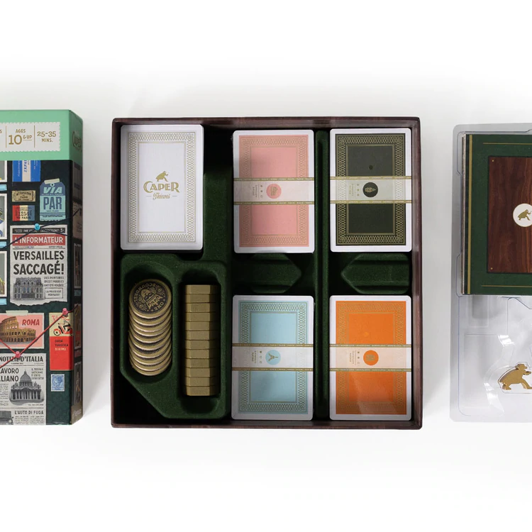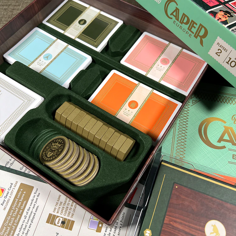 Caper: Europe to gra dla dwóch graczy z mechaniką draftu. Gracze na zmianę wysyłają złodziei do słynnych miejsc w całej Europie, walcząc o kontrolę dzięki unikalnym mocom kart. Złodzieje mają w zanadrzu sztuczki, które świetnie zadziałają, kiedy doda się do nich odpowiedni sprzęt. A kontrolowanie lokacji to nie wszystko, ponieważ punkty można zdobyć za bezcenne skradzione towary.