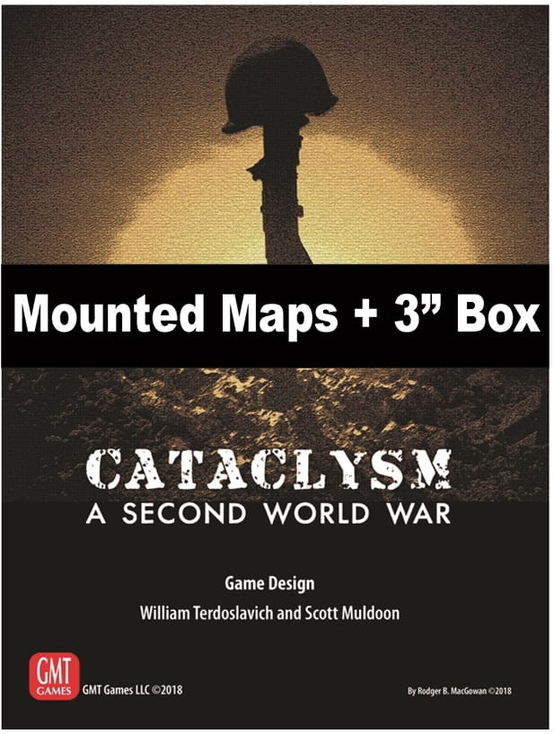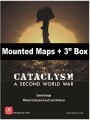 Duże 3 calowe puste pudełko do gry Cataclysm zawierające dodatkowo zestaw dwóch sztywnych i twardych map do gry Cataclysm. Mapy zastępują papierowe mapy z podstawki.