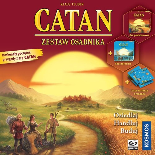 Zestaw osadnika zawiera podstawową wersję gry, uwielbiane rozszerzenie Żeglarze i 2 nowe scenariusze pełne miejsc do zasiedlenia! CATAN inspiruje miliony ludzi na całym świecie już od ponad 25 lat. Każda rozgrywka jest inna i zaskakująca.