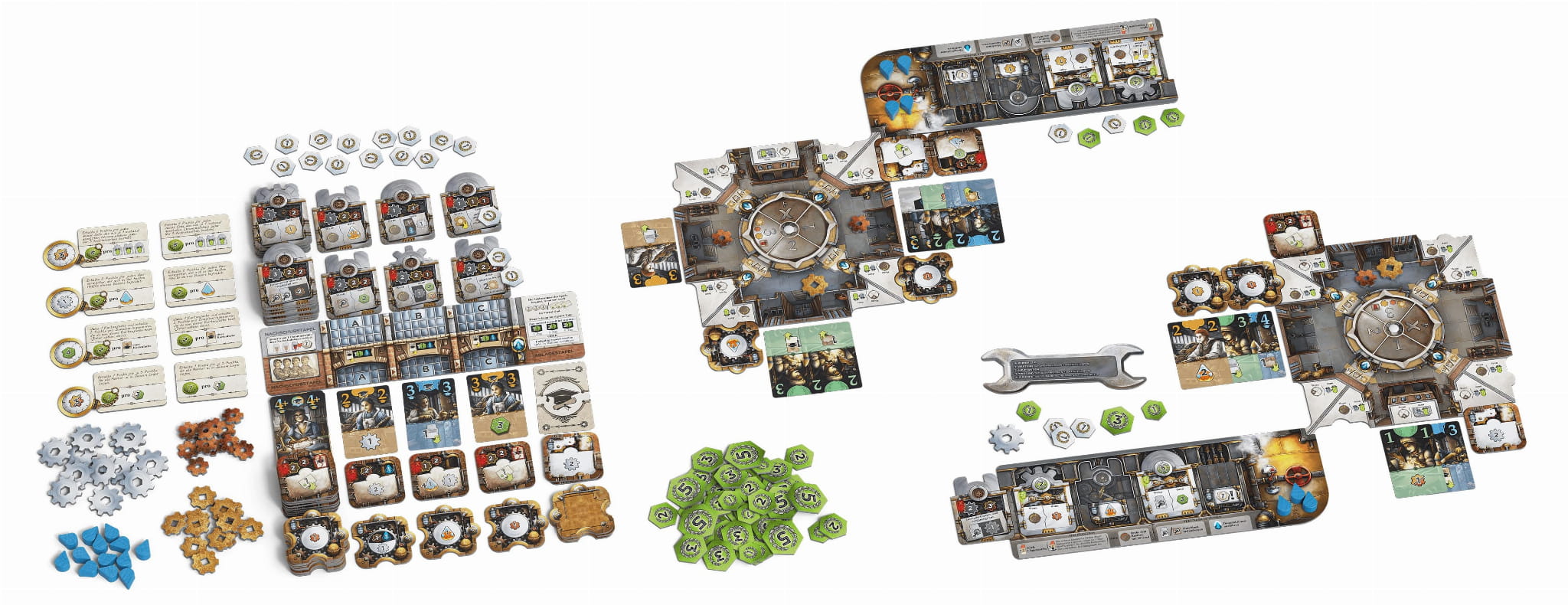 In Corrosion, each of you manages a factory and deploys engineers to build up diversified scoring and production engines. In the steam-filled air, however, your biggest enemy is time because most machines and gears rust away quickly, so you are well advised to also produce chrome gears and invest in rustproof and powerful chrome machines.