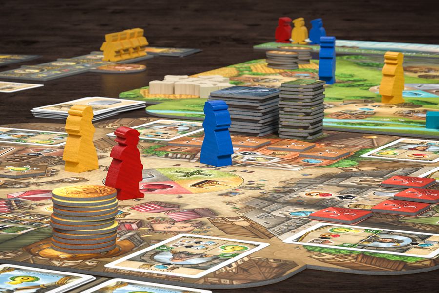 Crown of Emara skillfully combines card actions with worker movement actions, allowing players to plan their turns carefully during their downtime. The two counselors available to every player move in two separate roundabouts, requiring players to optimize every move. Additionally, two scoring tracks lead to a multidimensional playstyle as only the lower score counts towards victory and thus both tracks have to be advanced equally.