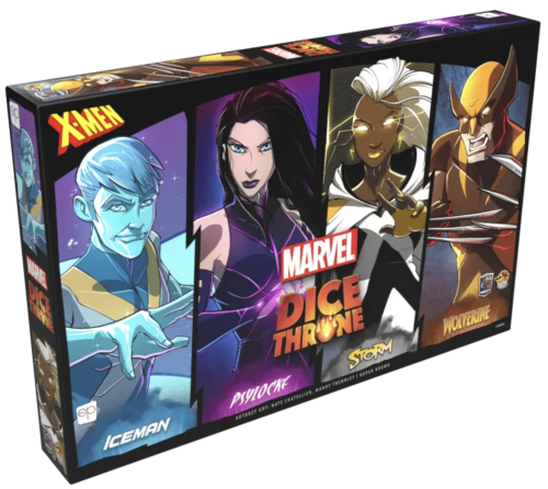 Dice Throne to szybka gra karciano-kościana, która sprawi, że twoje serce zabije mocniej. Gra opiera się na mechanice bestsellerowej serii Dice Throne i pozwala wcielić się w bohaterów X-Men: Iceman, Psylocke, Storm, Wolverine.