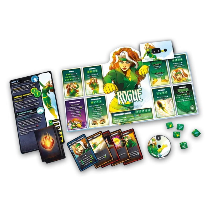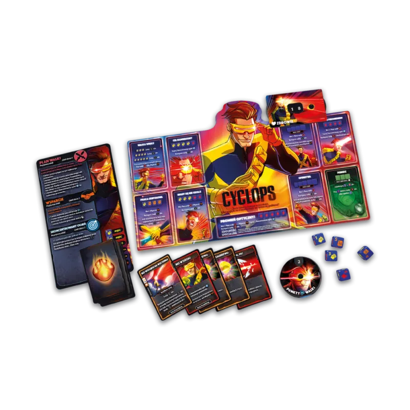 Dice Throne to szybka gra karciano-kościana, która sprawi, że twoje serce zabije mocniej. Gra opiera się na mechanice bestsellerowej serii Dice Throne i pozwala wcielić się w bohaterów X-Men: Cyclops, Gambit, Rogue, Jean Grey.
