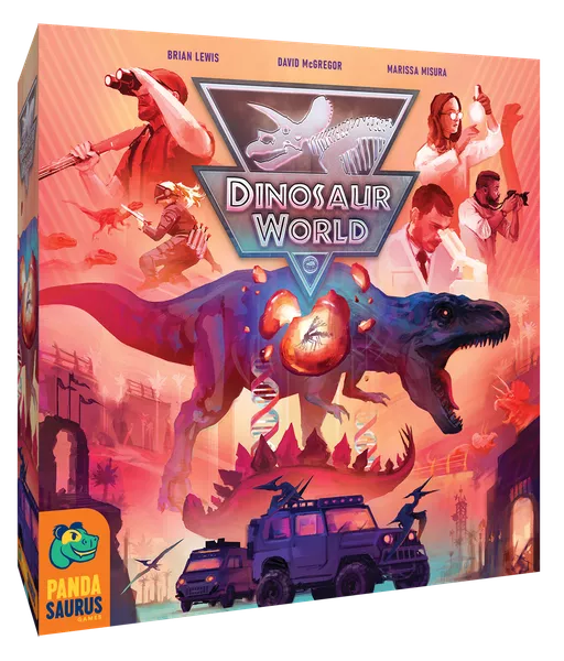 Each round in Dinosaur World, you draft a new résumé card to acquire new workers; spend workers to take public actions building your park and acquiring DNA; spend further workers to take private actions improving that park; then drive your jeep around experiencing the wonder and excitement of what you have built! Throughout the game you acquire victory points through a variety of means — and possibly a few visitor deaths as a natural consequence of overly enthusiastic dinosaur encounters. At the end of the game, you lose points if you accumulated too many deaths, then the player with the most points wins!