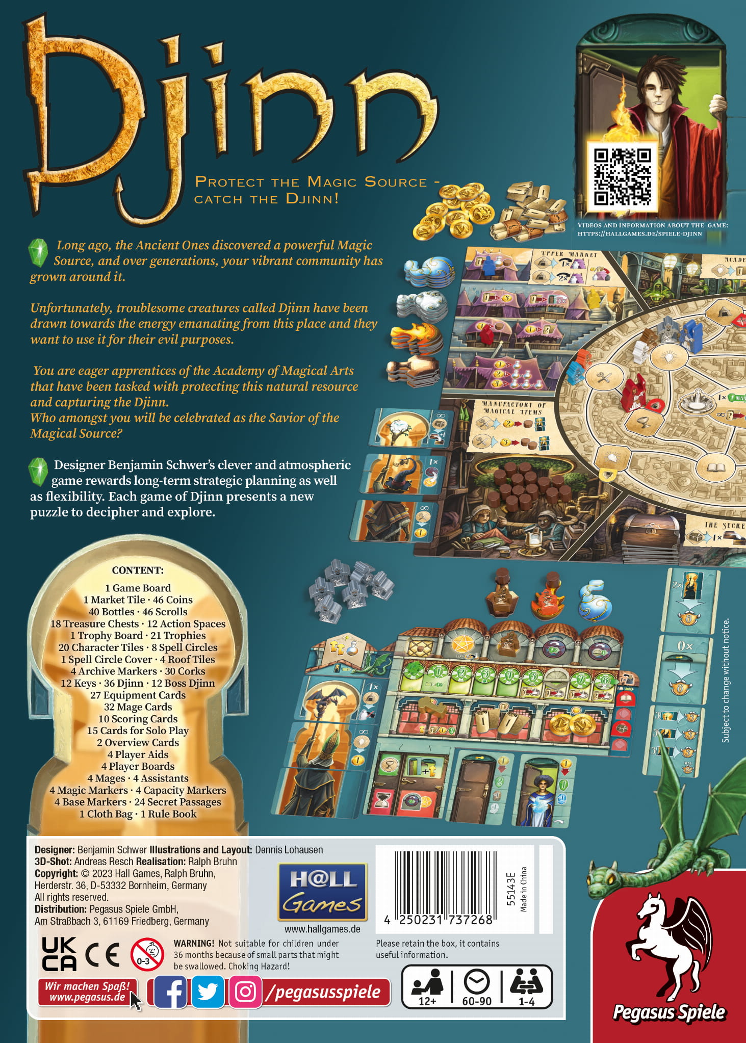In each round, you can reach only one of two or three of the locations, so you must plan carefully to have all the resources you need in time to catch the Djinn. The game ends when all six "Boss Djinn" have been captured and removed from the map, then you score points for all captured Djinn.