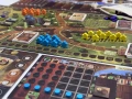 To make all this happen will require a chain of actions that starts in your vineyard. You will need to look for continuous improvement, constantly react to your opponents, and optimize your choices to build the most prestigious Champagne Maison. In game terms, on a turn you move up a disc on the winery game board and perform an action, with the actions become more powerful as the game progresses. You will plant in the vineyards, harvest crops, buy grapes from neighbors, make wines in your cellar (some more valuable than others), allocate salespeople on four market routes and workers in the vineyard and cellar, and acquire the necessary accessories to improve production.