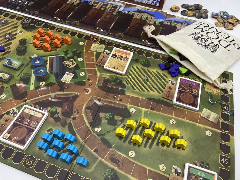 Despite production growth, improved quality, and increasing popularity, trade did not reach spectacular rates during the 19th century — which is why the game Dom Pierre is much more about winning prestige than earning money. In the game, you are responsible for one of the oldest Champagne Maisons, producing and selling wine all over Europe, not to mention the other side of the Atlantic. The local economy will be boosted, employment increased, and your brand will become universally recognized.