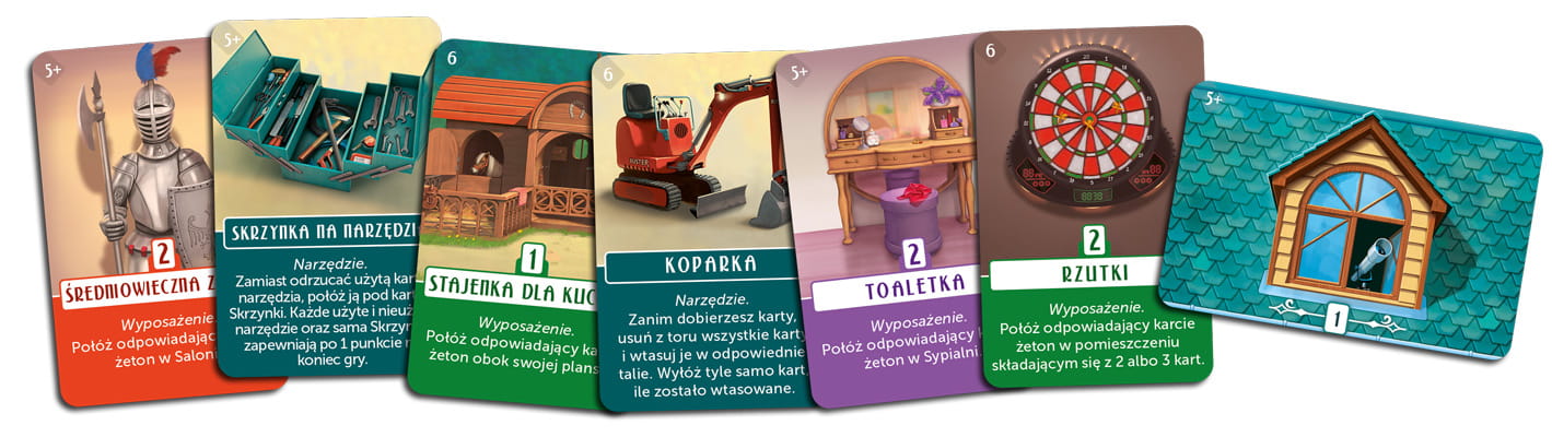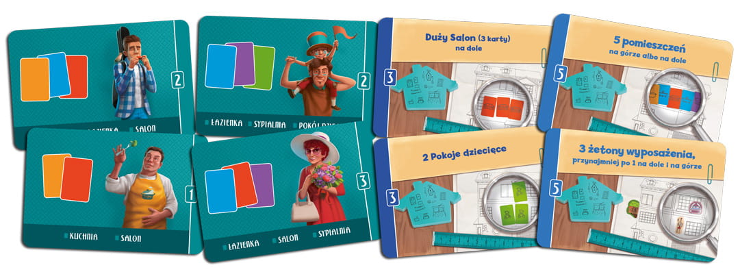 Przed takim wyzwaniem stawia Cię rozszerzenie Rodzina i Przyjaciele. Na kartach przyjaciół znajdziesz ich wymagania wobec układu pomieszczeń. Spełnij je, aby otrzymać dodatkowe punkty. Przecież nie ma w życiu nic piękniejszego niż słowa "dobra robota" usłyszane po udanym remoncie!