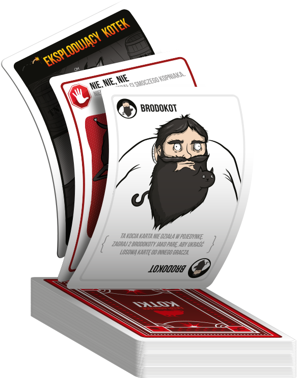 Spróbuj swoich sił w tej wysoce strategicznej, w pełni bezpiecznej wersji rosyjskiej ruletki! Podczas rozgrywek gracze co turę dobierają po jednej karcie, aż do momentu, gdy któryś trafi na puchatą bombę. Ów nieszczęśnik rozlatuje się na tysiąc kawałeczków i wypada z gry. Pozostałe karty służą do unikania eksplodujących kotków lub łagodzenia ich wybuchowego temperamentu.