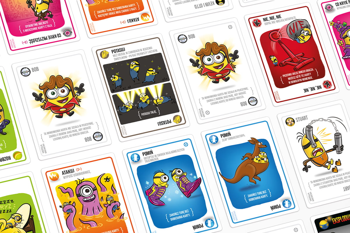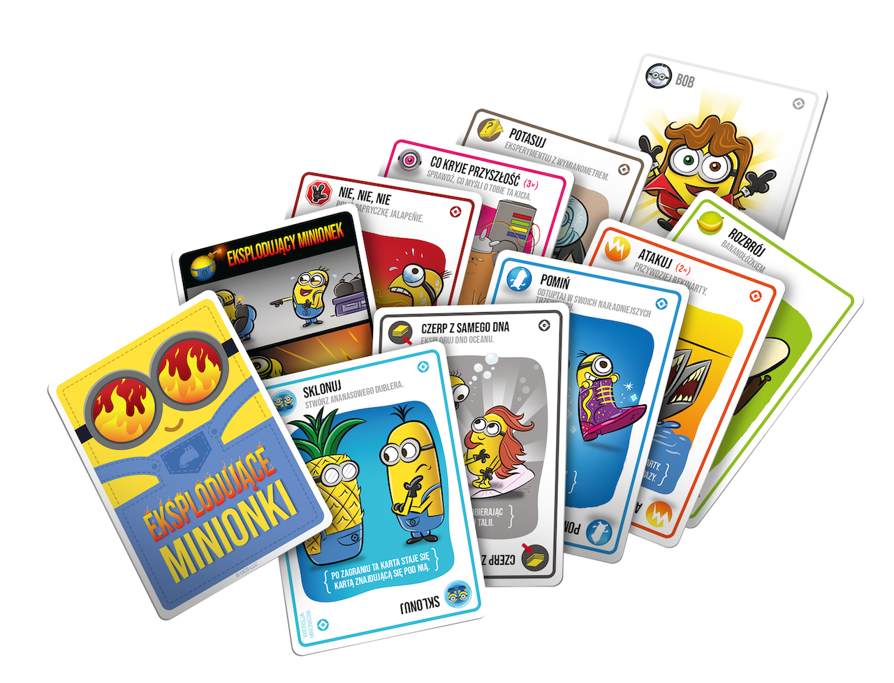 O co tu chodzi? Gracze dobierają karty, dopóki któryś nie odkryje eksplodującego minionka. Osoba, która na niego trafi, wybucha i natychmiast przegrywa grę. No, chyba że uda jej się rozbroić minionka czymś takim jak bananołóżko albo niekończące się lody... Reszta kart służy do tego, by przerzucić albo uniknąć eksplodującego minionka. Najważniejsza zasada? Nie wybuchnij! Reszta jakoś się ułoży, a zwycięzcą zostanie ostatnia osoba na nogach!