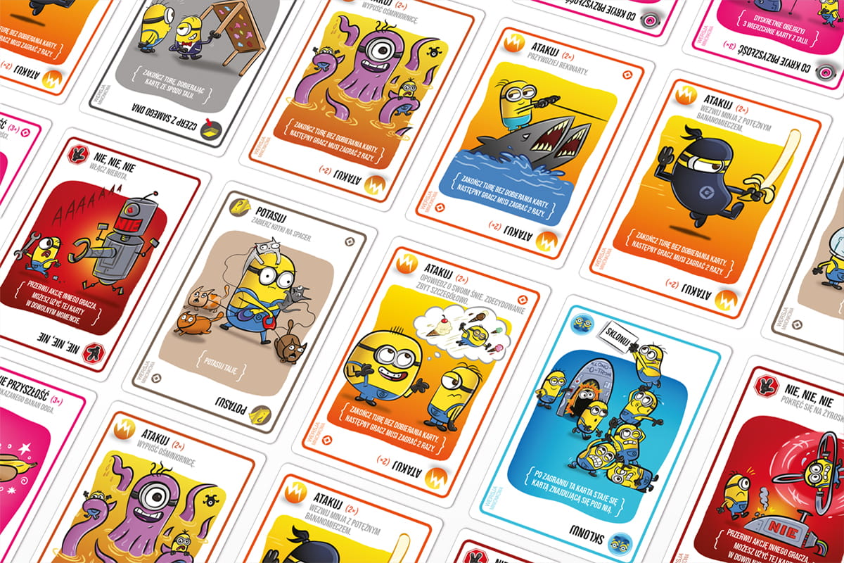 - Wersja z minionkami działa dokładnie jak klasyczne Eksplodujące Kotki, ale posiada zupełnie nowe, klimatyczne grafiki i pełna jest żartów nawiązujących do świata żółtych stworków.