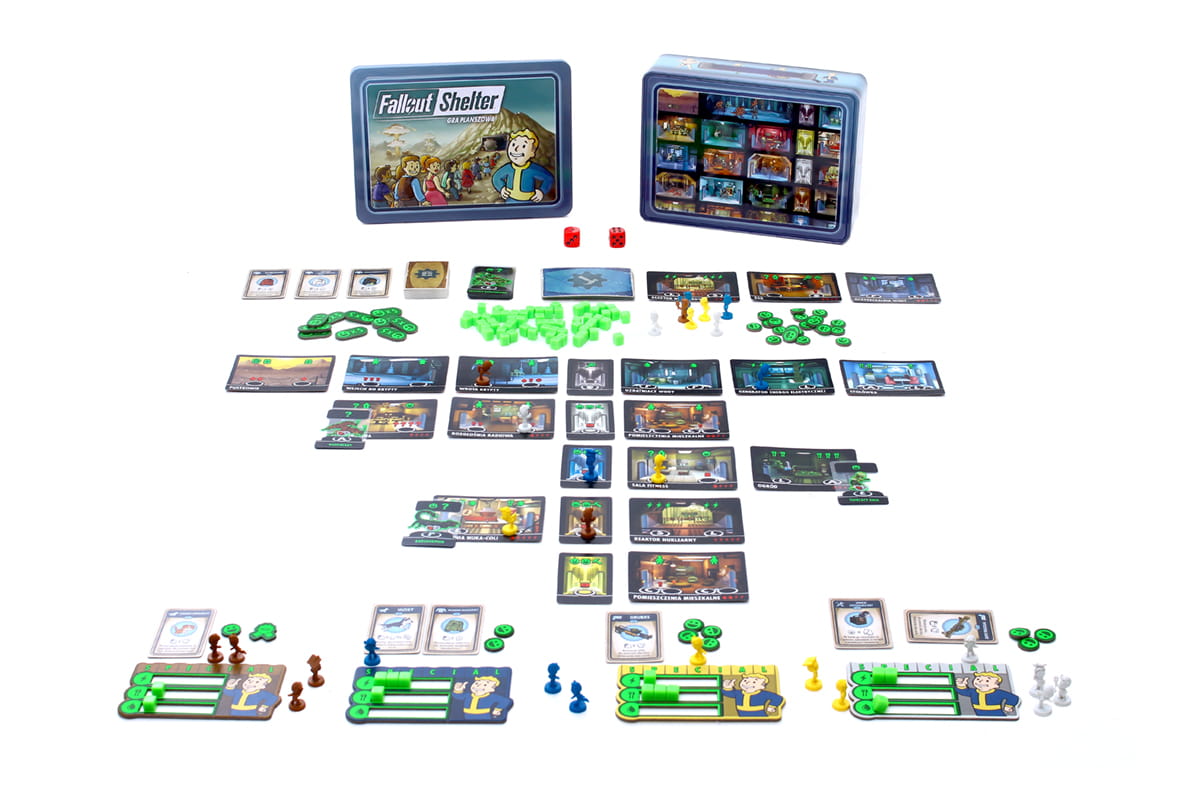 Fallout Shelter to postapokaliptyczna gra planszowa dla 2-4 graczy, nawiązująca stylistyką i tematem do popularnej gry komputerowej Fallout i rozgrywająca się w tym samym świecie.