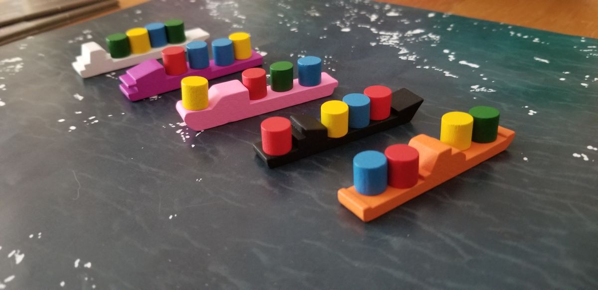 The components in Flotilla are unique, immersive, and interconnected. Your skiffs will be able to actually carry up to four resource barrels, and come in a unique shape for each player color. Artifact tokens slot into matching spaces in a double-layered hub board and art on the ocean tiles lines up to create a unique layout for your growing Flotilla each time you play.
