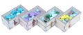 The design provides both efficient storage and improved game play. Many of the trays can be utilised during the game, and they greatly aid set-up and clear-away times. The rules and boards act as a lid on top of the trays.