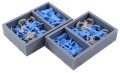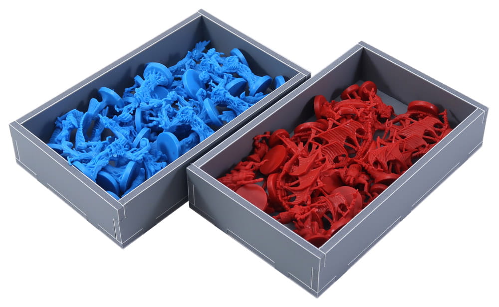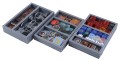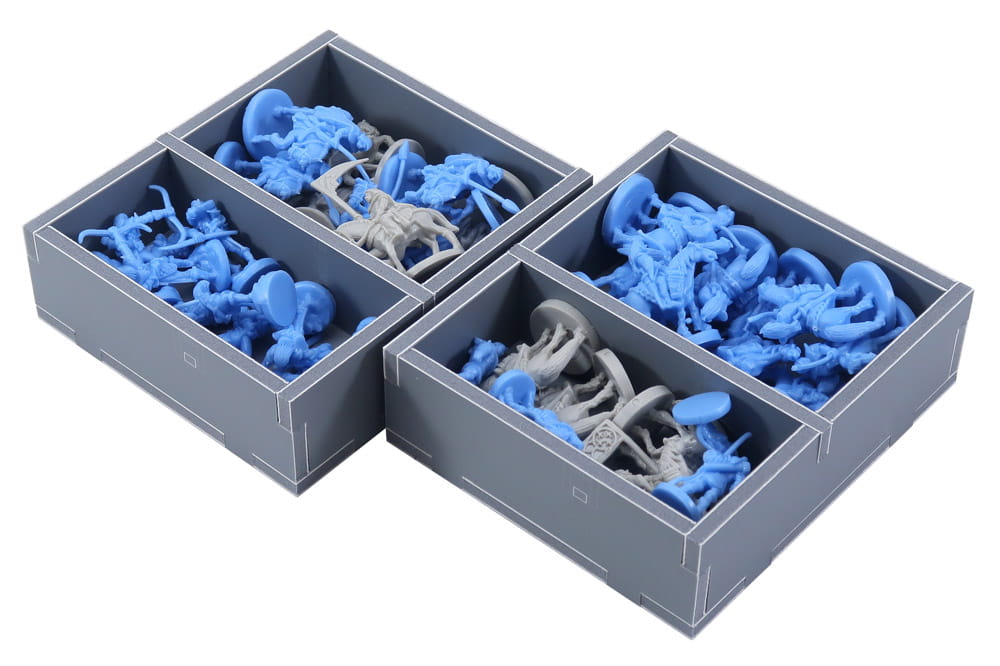Insert compatible with War of the Ring®, and the Lords of Middle-Earth®, and Warriors of Middle-Earth® expansions. The design provides both efficient storage and improved game play. Many of the trays can be utilised during the game, and they greatly aid set-up and clear-away times. The board and rule books act as a lid on top of the trays.