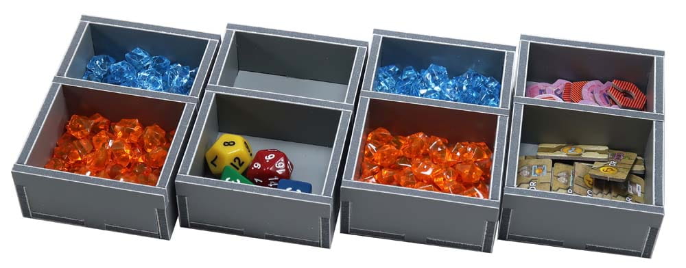 Insert compatible with Xia: Legends of a Drift System®, including the Embers of a Forsaken Star®, Sellsword®, and Missions and Powers® expansions. The design provides both efficient storage and improved game play. The trays can be utilised during the game, and they greatly aid set-up and clear-away times. The rules and boards act as a lid on top of the trays.