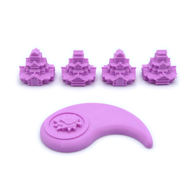 The stronghold miniatures are highly detailed and can be stacked on each other, except for the ones on turtles. The alliance tokens are decorated with symbols to identify each clan and they are the perfect replacement for the original ones included in the game.