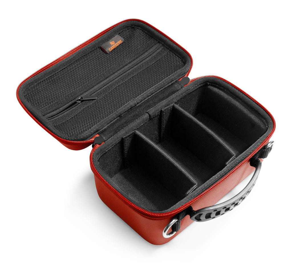 To solidne etui dostępne w sześciu różnych kolorach umożliwia bezpieczne przechowywanie kart i akcesoriów oraz łatwe zidentyfikowanie zawartości. Zintegrowany zamek zapewnia bezpieczne zamknięcie, podczas gdy dwie wewnętrzne ścianki można usunąć w celu powiększenia przedziałów. Etui jest bardzo wytrzymałe, dzięki czemu idealnie sprawdzi się jako towarzysz podróży.