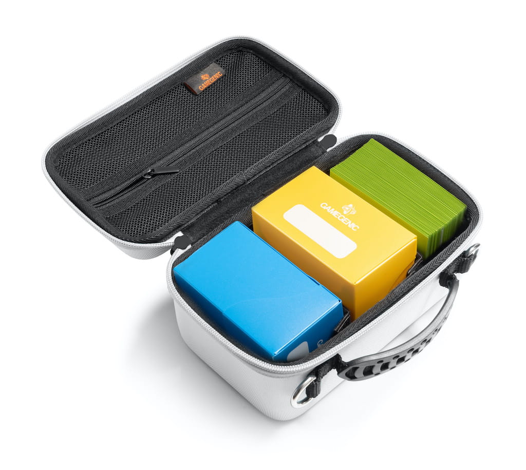 To solidne etui dostępne w sześciu różnych kolorach umożliwia bezpieczne przechowywanie kart i akcesoriów oraz łatwe zidentyfikowanie zawartości. Zintegrowany zamek zapewnia bezpieczne zamknięcie, podczas gdy dwie wewnętrzne ścianki można usunąć w celu powiększenia przedziałów. Etui jest bardzo wytrzymałe, dzięki czemu idealnie sprawdzi się jako towarzysz podróży.
