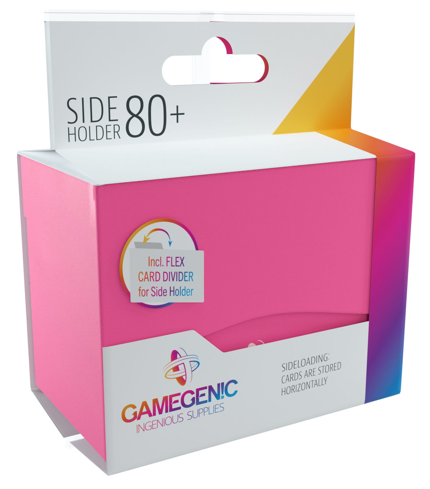 Ten codzienny produkt oferuje graczom sprytne i szybkie rozwiązanie problemu przechowywania i organizowania swoich talii. Side Holder 80+ jest codziennym ładowanym od boku pudełkiem na talie umożliwiającym bezpieczne przechowywanie do 80 podwójnie zakoszulkowanych kart. Jego samozamykająca się pokrywa może zostać otwarta do 180° dzięki zastosowaniu innowacyjnej technologii COBRA NECK na grzbiecie. Poręczny pasek do pisania umożliwia indywidualne etykietowanie. Dołączony jest również jeden Flex Card Divider.