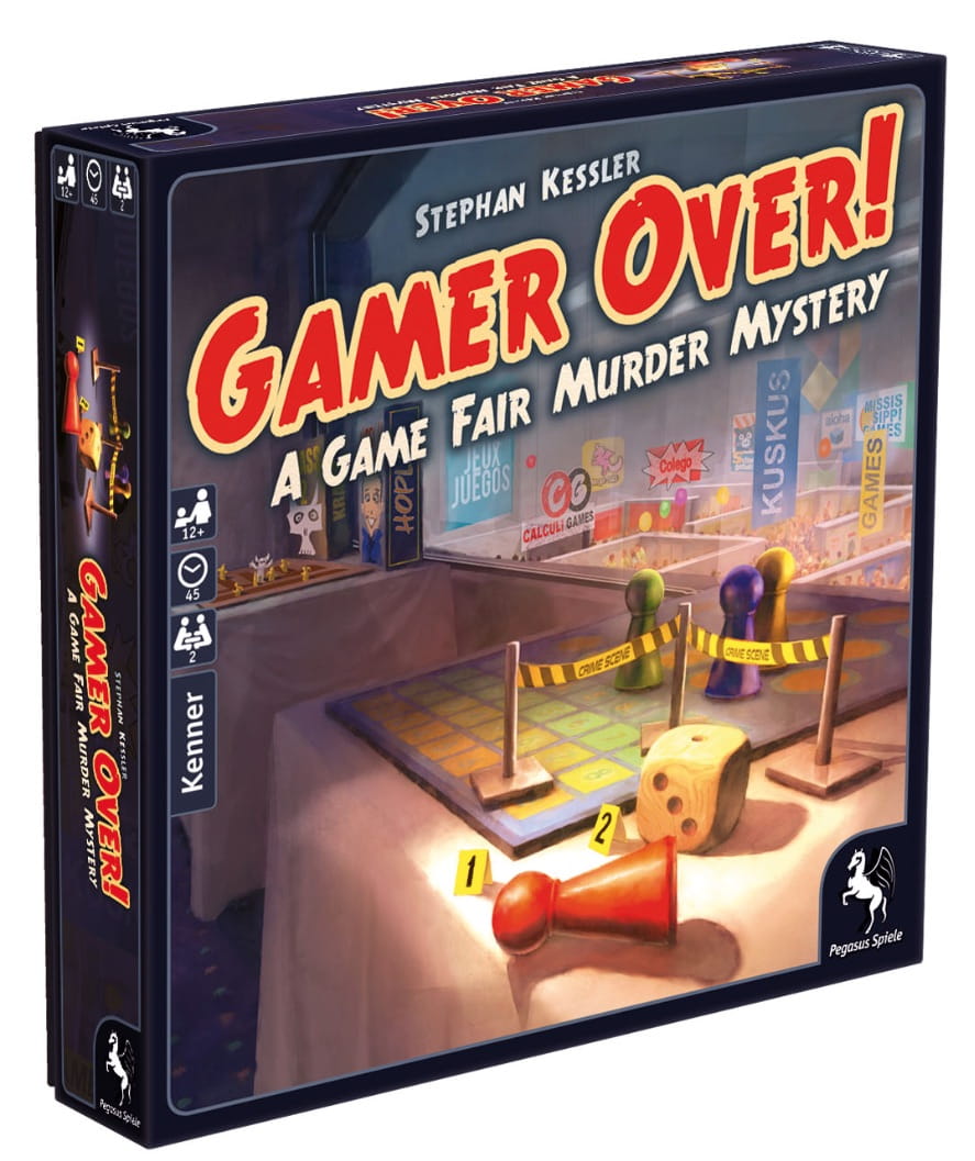 Gamer Over! is a classic murder mystery. Players will take on the role of characters like the bossy convention manager, the grumpy head of security, or the aspiring board game designer. But there is a twist: one or more of the players will also be the murderer and will be able to lie! The other players will try to use clues in a clever way to determine who the murderer is. Can you convict the criminal? Or will you be the one to hide a terrible secret?