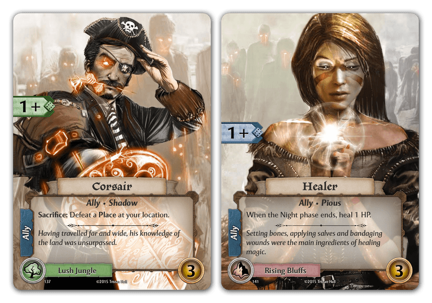 Gloom of Kilforth is a card game of high fantasy with a Gothic edge, playable in 1-3 hours, where 1-4 players, working individually or together, must take their humble adventurers on a journey through a dark world of magic and peril. They will visit strange places, stranger people and overcome powerful enemies in their mission to discover mysterious artefacts and mystical Spells. Players follow their Hero’s tale from modest beginnings through an epic story to an exciting climactic battle for the fate of the world. Gloom of Kilforth takes about 45 minutes per player to play.